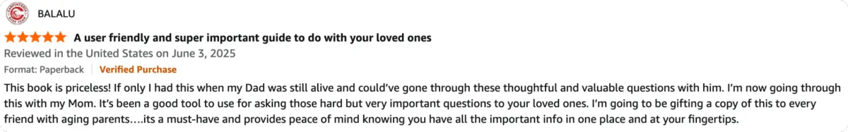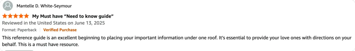 Everything You Need to Know About Me helps your loved one record their medical history, legal preferences, emergency contacts, and personal wishes so decisions aren’t made in the dark.